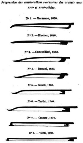 Los violines de entonces y por lo menos hasta el 1800 tenían el mástil y el batidor bastante más cortos que los instrumentos actuales.