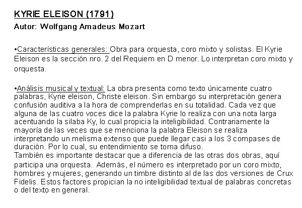 - Kyrie Eleison, Requiem in D minor K.626 (10 de diciembre de 1791) Autor: Wolfgang Amadeus Mozart. Versión en vivo.