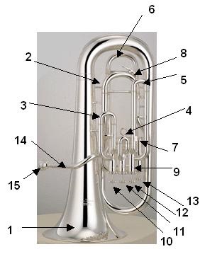 El eufonio es un instrumento compuesto principalmente por latón lacado. Posee pistones o válvulas rotatorias y una boquilla. Se lo relaciona mucho con la tuba pero con un cuerpo cónico y pabellón acampanado. Su campana es mas estrecha que la de la tuba, por lo que su registro es mas alto.