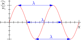 En el caso de una onda periódica, la longitud de un patrón de onda completo es la distancia entre una cresta y la siguiente, o de un valle al siguiente, o de cualquier punto al punto correspondiente en la siguiente repetición de la forma de onda. Llamamos a esta distancia longitud de onda, denotada con λ ( [ [ Λ | lambda ] ] ), letra griega. El patrón de onda viaja con rapidez constante "v" y avanza una longitud de onda λ en el lapso de un período, denotado "T". Por lo tanto se concluye que v=λ.T. En gran parte de los casos, la velocidad de propagación de la onda dependerá exclusivamente del medio en el que se propaga, por lo todas las ondas de cualquier longitud poseerán la misma rapidez, modificando su período para mantener la relación anterior constante.