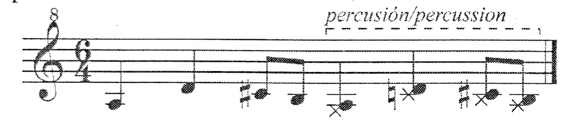 • 'Multifónicos: Este recurso sonoro consiste en ubicar mediante una presión de aire y una digitación determinada, la ejecución simultanea de dos sonidos.