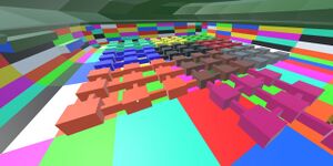 Se empleó el programa de diseño 3D “Blender” para crear la totalidad de los objetos físicos, incluyendo cada uno de los cubos, los túneles de enlace, y la estructura de alrededores, todos en formato “.GLB”, para su posterior carga.